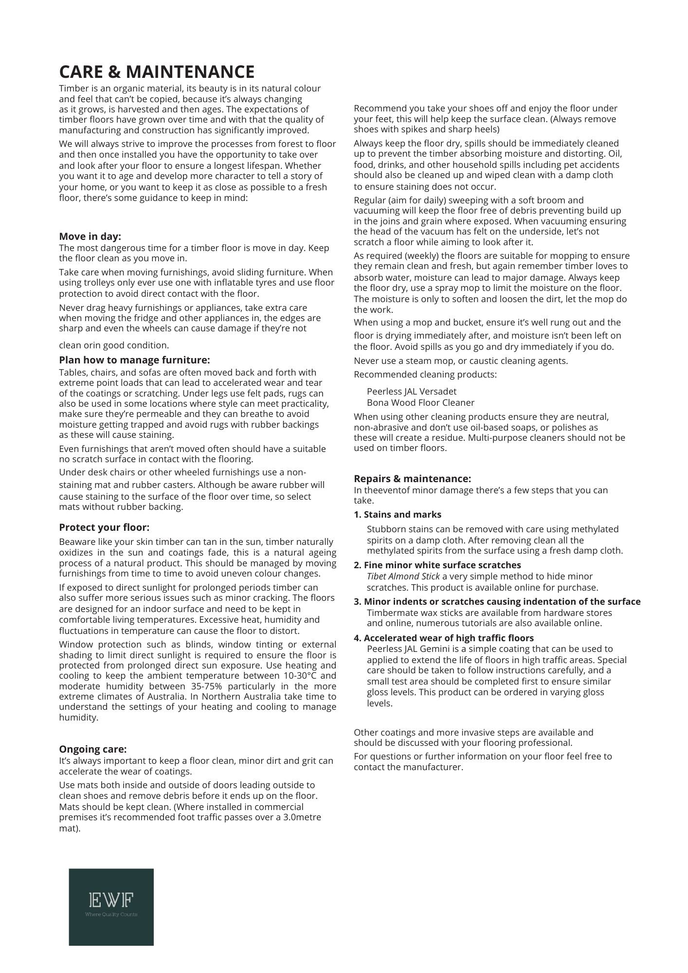• Low Maintenance – Simple cleaning with regular sweeping and mopping